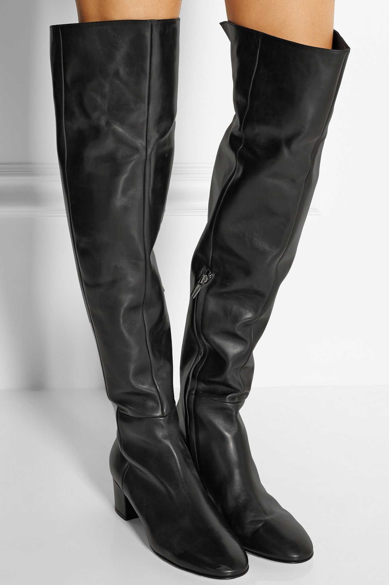 Зона декольте должна быть закрытой. Лаковая кожа, леопардовый принт с ботфортами не сочетаются, делая образ вульгарным. Данная обувь идеально смотрится со скромным женственным стилем одежды и образами casual. Кожаные леггинсы носят под замшевые сапоги.