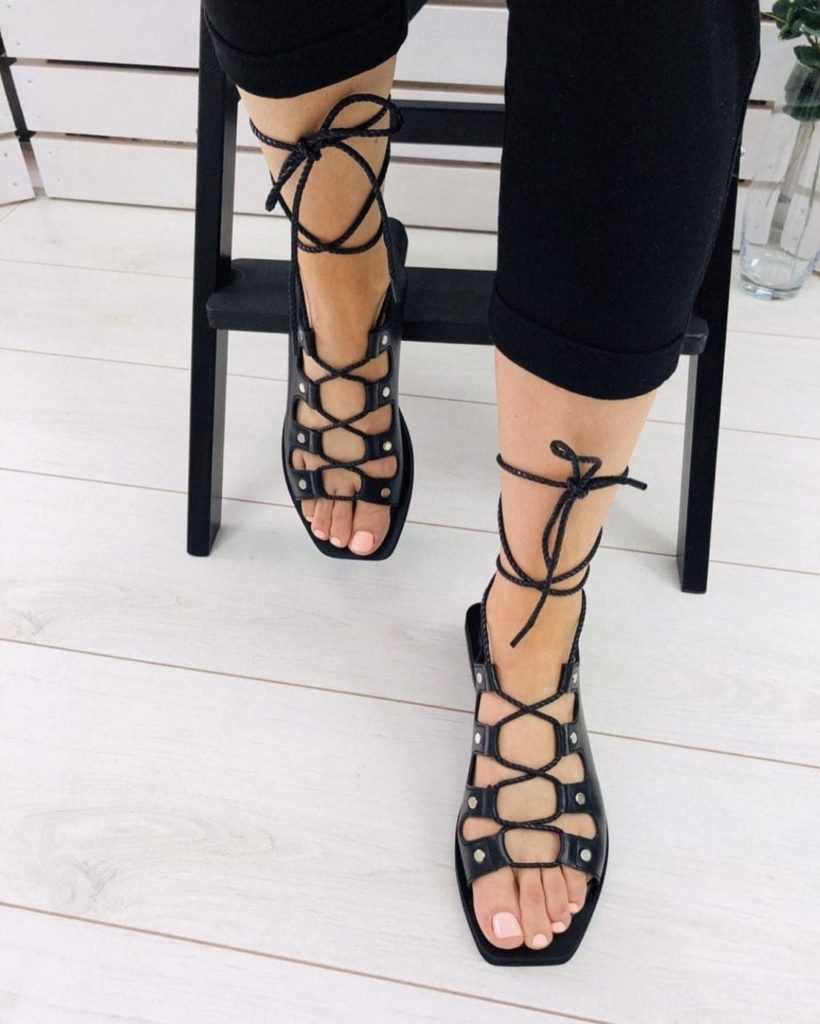 Гладиаторские сандалии представляют собой летний открытый вариант с характерным переплетом вокруг нижней части ноги. Носите с элегантными нарядами или шортами, отправляясь на пляж.