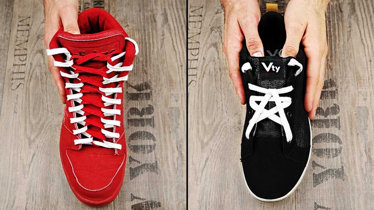 Зашнуровать ботинки спортивного типа нужно таким образом, чтобы крепче держалась нога. Есть много способов, далее три самых популярных.