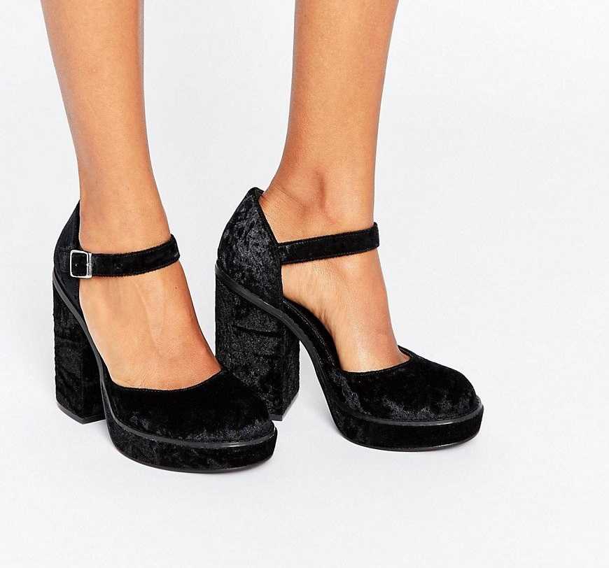 Красивые туфли на устойчивом каблуке тоже актуальны. В тренде каблук в форме кирпичика, с ремешком и округлым мысом, называются «Мэри-Джейн».