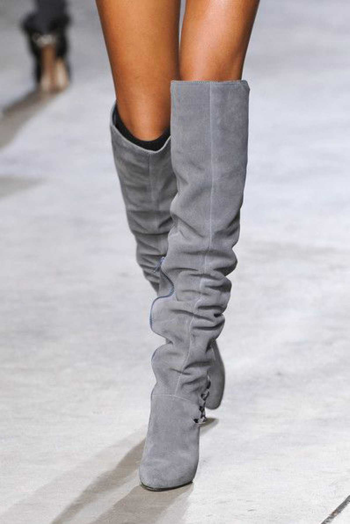 Считается, что замшевые ботфорты менее практичны, чем кожаные. На самом деле при бережном обращении они прослужат ничуть не меньше.