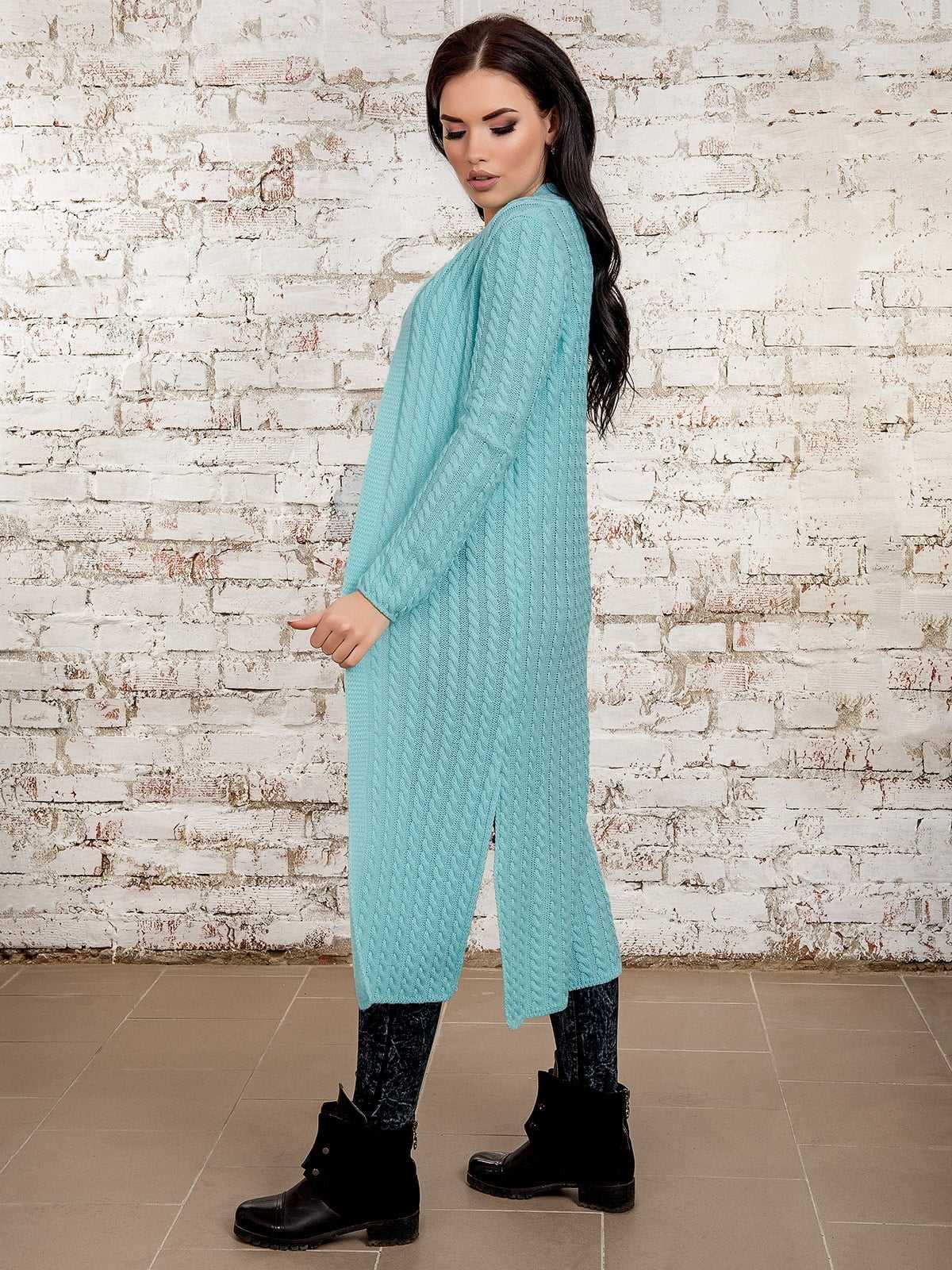 Длинные вязаные кофты хороши тем, что одинаково стильно смотрятся и на девушках с пышными формами, и на худышках. Достаточно популярная сейчас тенденция – это сочетать удлиненный верх с зауженными джинсами.