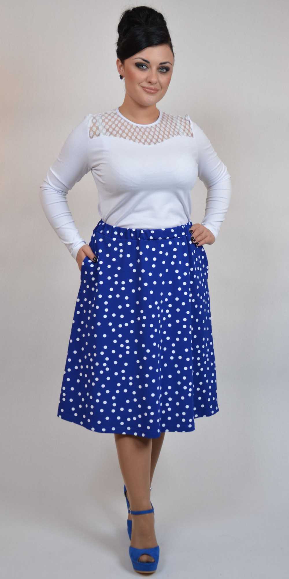 Синий. Не нужно отказываться и от синих юбок. Это могут быть варианты, оформленные в темных приглушенных тонах, которые уместны будут для похода на работу. А вот для повседневности или неформальных вечеринок можно приобрести себе и более яркие модели, например, цвета электрик. Верхняя часть лука при этом должна быть сдержанной.