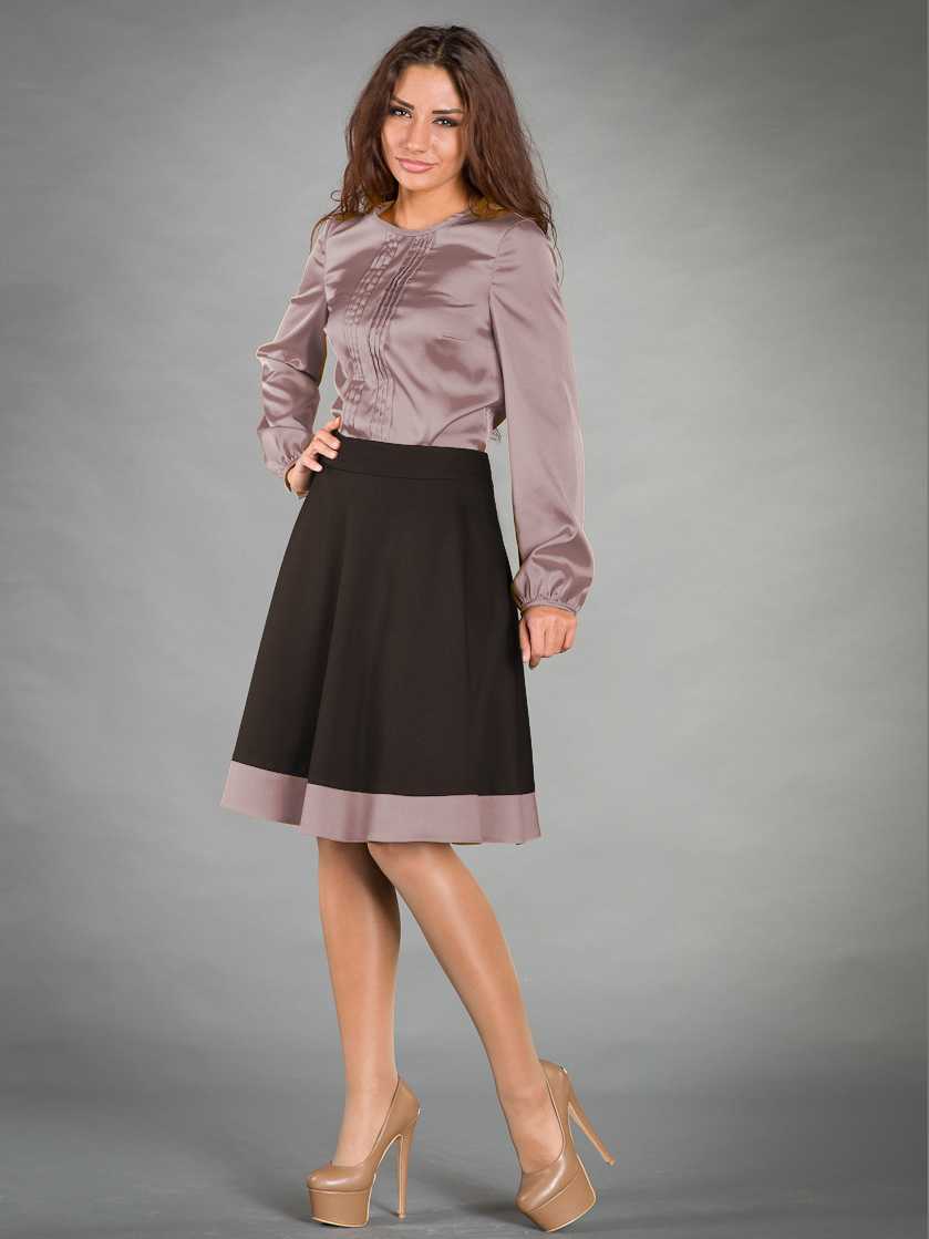 - Блузка. Универсальный вариант — блузка рубашечного покроя, ее можно сочетать с изделиями любого очертания.