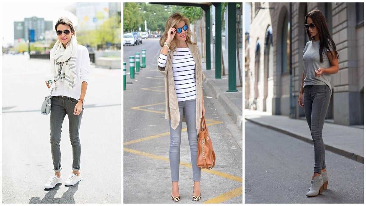 Для повседневного ношения серые джинсы подходят идеально. Оптимальный летний вариант – это завязанная на животе рубаха, джинсы с завышенной талией, босоножки с декоративной шнуровкой. Или клетчатая рубаха на выпуск, рваные серые джинсы, классические кеды и шляпка. В прохладные вечера модницы выбирают теплый кардиган или меховой жилет, скинни, черные туфли и отправляются на прогулку.