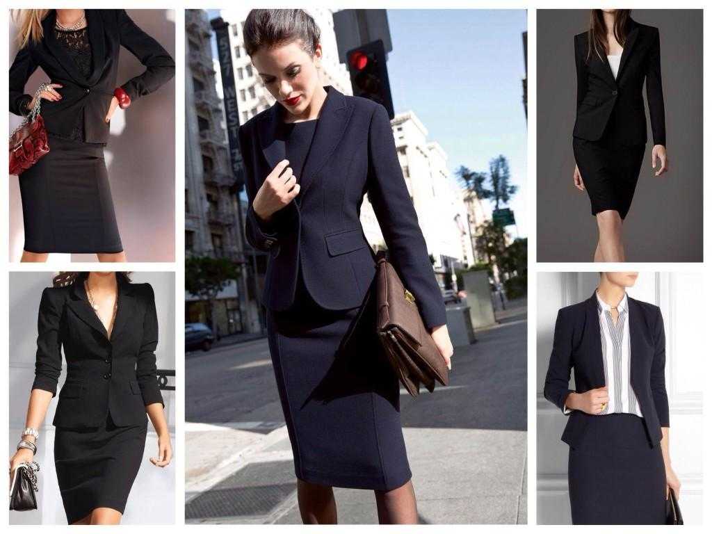 Брючный костюм или костюм с юбкой. Стандарт для деловой леди и очень удобный повседневный вариант для работы.