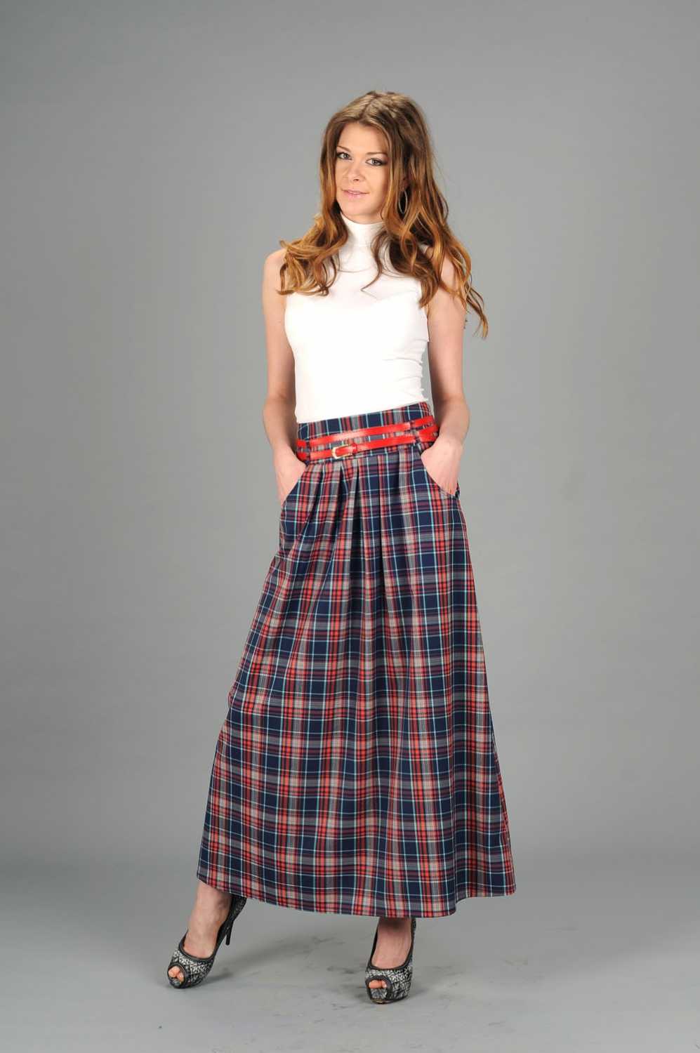 Юбки длины макси представлены в двух вариантах. Первый – клетчатая юбка свободного кроя. Такая юбка, как правило, выполнена из легких тканей и подходит для летних прогулок или походов на пляж. Второй вариант – максимально деловая юбка прямого кроя. Такое изделие в классических тонах подойдет для деловых девушек.