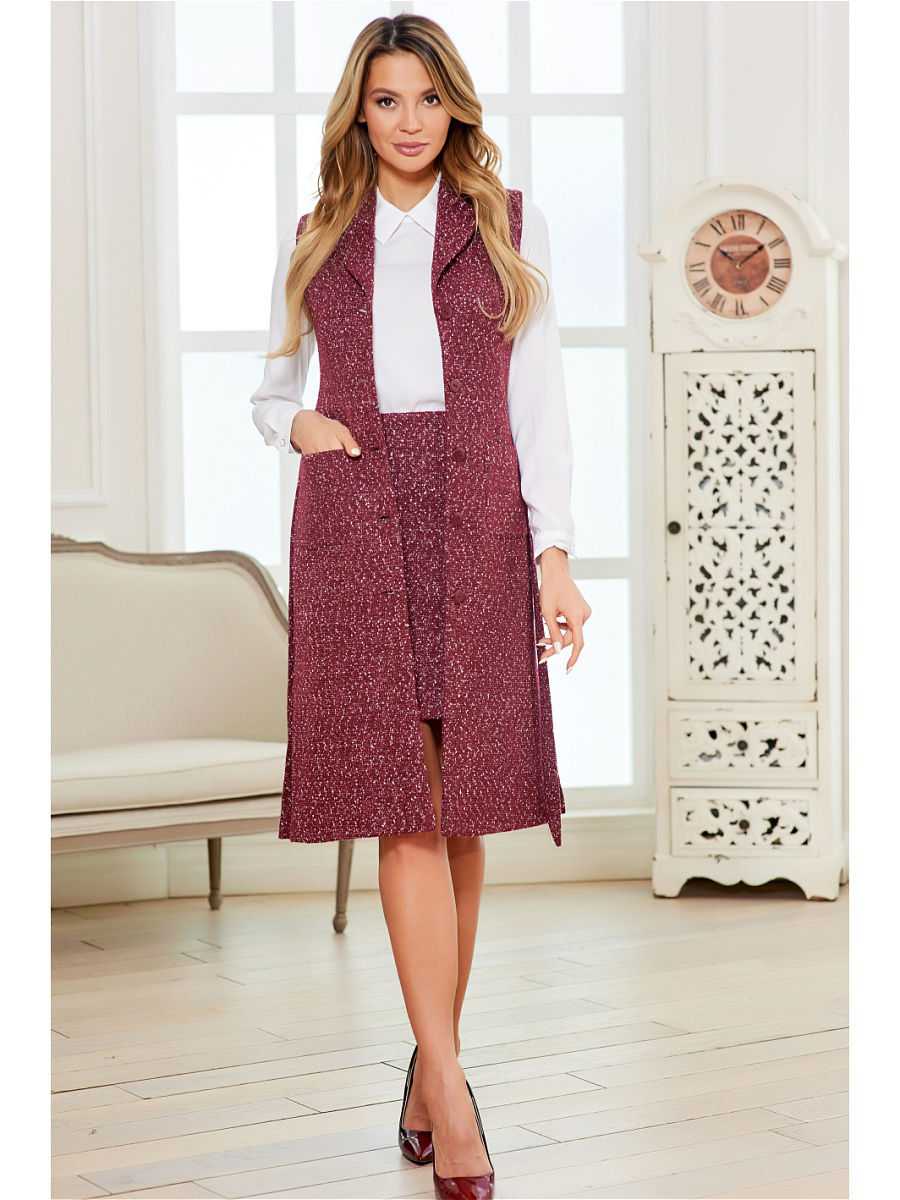 Стандартная длина юбок в костюмах из плотной ткани — средняя, или до колена. Это универсальная длина, которая идет женщинам всех возрастов с любыми формами, допустима для носки и на официальных мероприятиях, и на неформальных встречах.