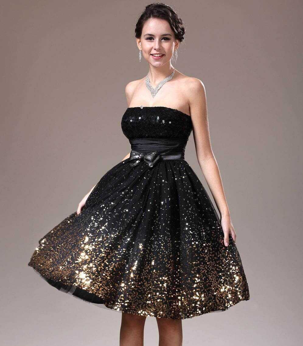 Безусловно, черный цвет – роскошен, и как нельзя лучше подходит для тожественных случаев. Но в нашей ситуации, когда мы подбираем оптимальный вариант для юных девушек, этот цвет лучше разбавлять деталями. Например, золотистыми блестками или сочетанием тканей разных фактур. Оригинально будет смотреться черный фатин на кремовой подкладке – таинственно и одновременно скромно.