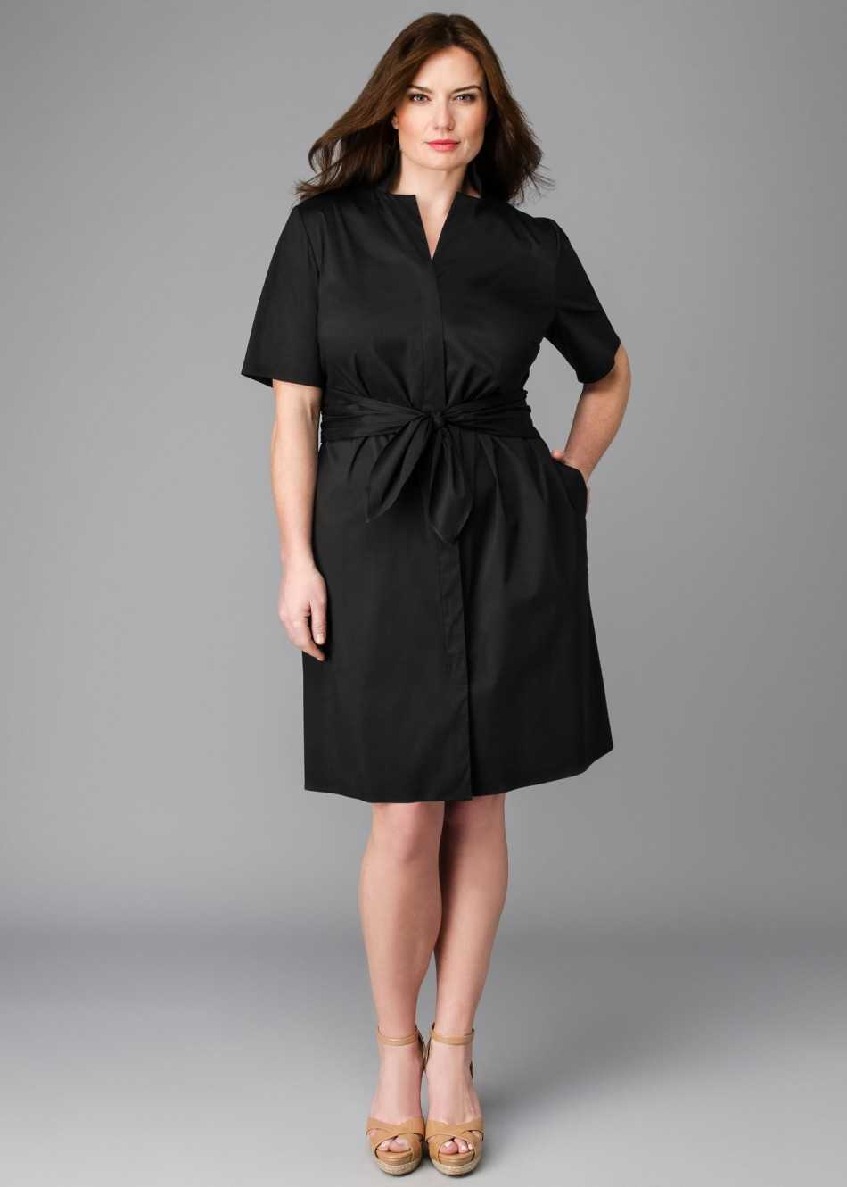 Черное приталенное платье больших размеров есть в коллекциях всех ведущих модельеров. Оно универсально, элегантно, поэтому никогда не выходит из моды. Дополненное стильными аксессуарами (сумочка, украшения, шарф), оно идеально подходит для званого ужина.