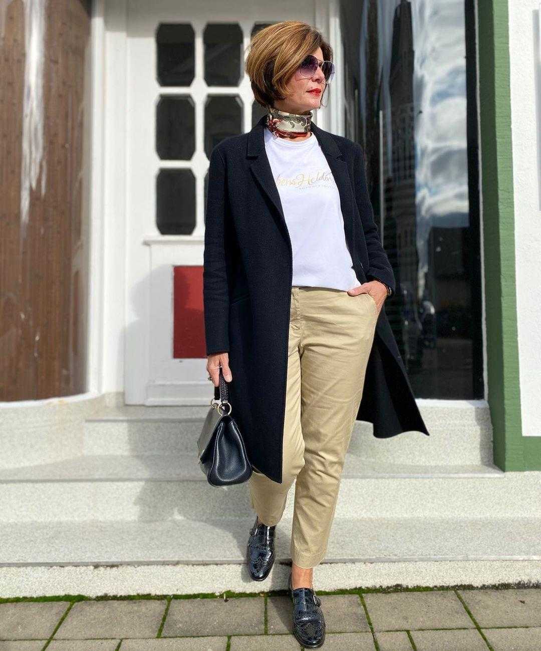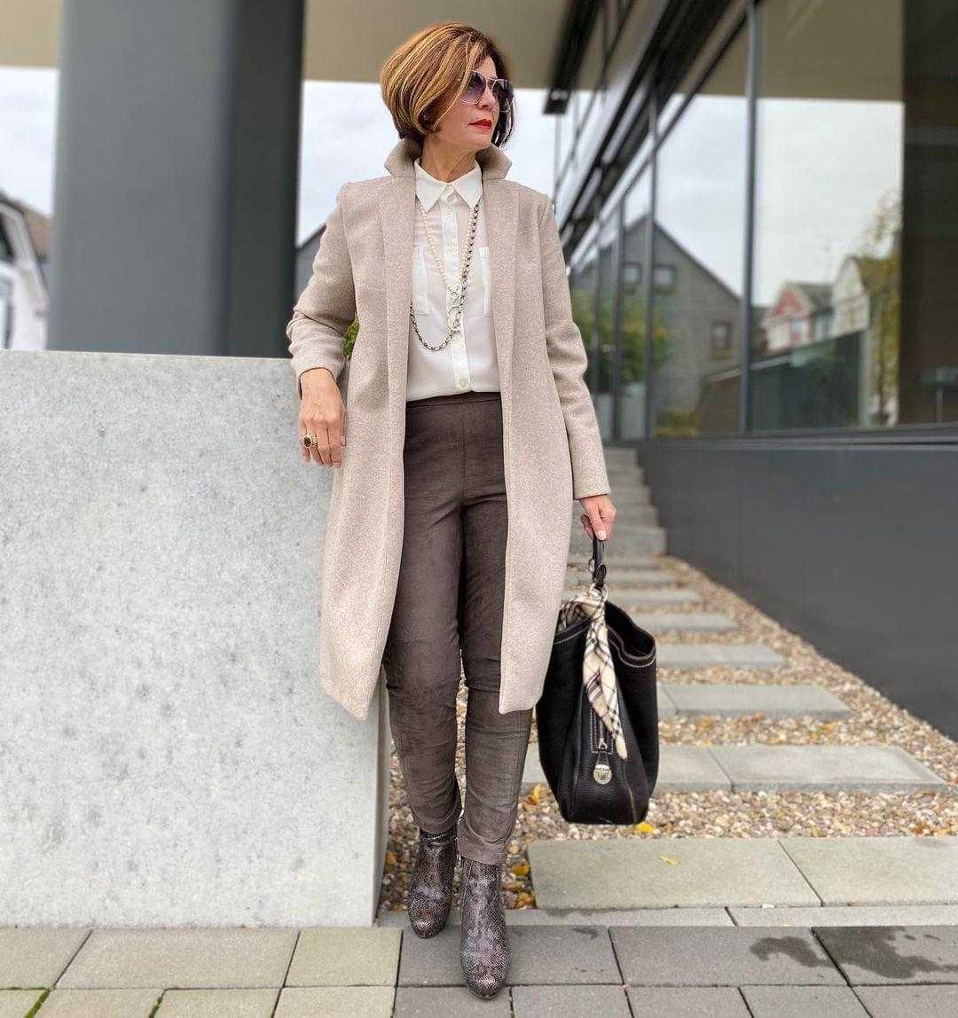 Мохер подойдет только в виде теплого свитера или длинного кардигана с шалевым воротником. А коричневый цвет с головы до пят не украдет ваши годы, а прибавит их. Даже если вы бабушка для своих внуков, не ощущайте себя бабушкой для всех и не показывайте это через одежду. Мода после 50 – это не про скуку! Поэтому живите полной жизнью и, прежде всего, наслаждайтесь разнообразием стилей и буйством красок.
