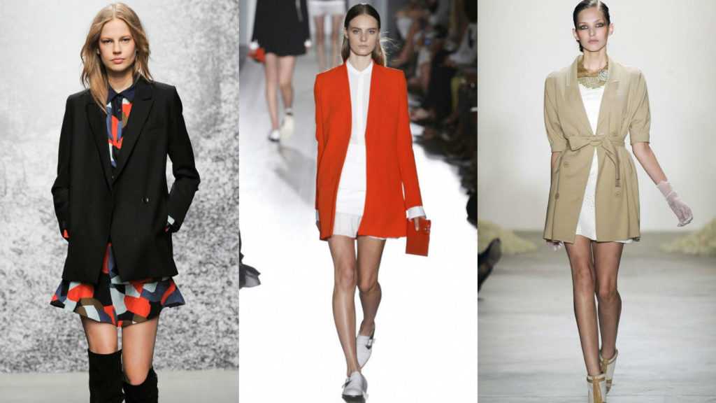 Широкоплечие пиджаки отлично смотрятся с платьями, это может быть сарафан в стиле бохо, романтичное платье в бельевом стиле или даже вечернее платье макси. Еще одно стильное, но непривычное решение – объемный блейзер с велосипедками, такое сочетание фасонов делает из фигуры любого типа перевернутый треугольник.