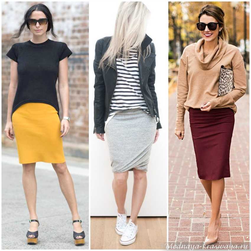 Главное при выборе юбок для типа фигуры яблоко – не создавать акцент на талии. Если модель узкая – блузка носится навыпуск, пышная – заправляется внутрь, но сверху желательно накинуть короткий жакет, жилет, блейзер.