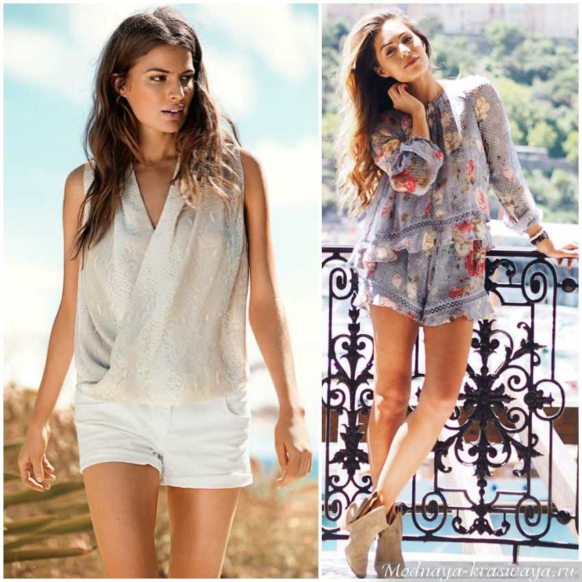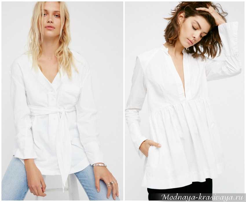 Классические рубашки – нет, блузки и топы на кокетке, с драпировками, летящих фасонов – да. Подойдет многослойность и комбинированные варианты. Например, облегающий топ и свободная блуза. Если все-таки рубашка, то сверху жилет, жакет в стиле Шанель, расстегнутый пиджак. Верхние пуговицы на воротничке тоже лучше не застегивать.