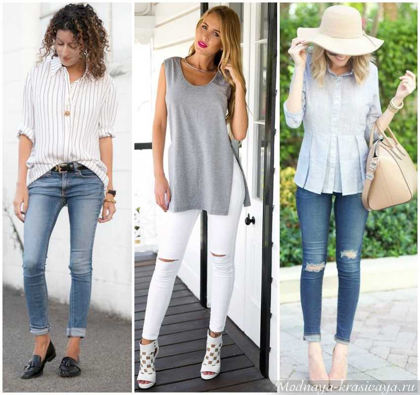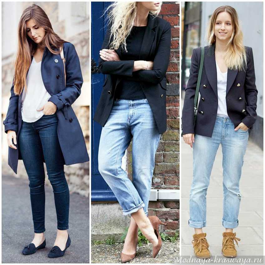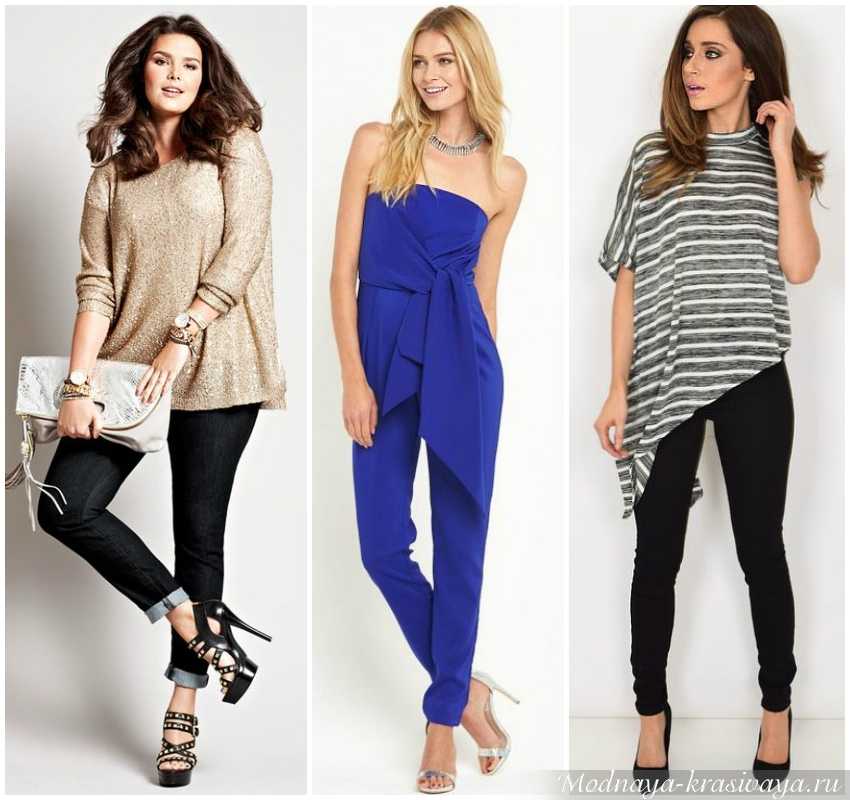 Джинсы подбираются по тому же принципу. Подойдут бойфренды и скинни со свободной футболкой или туникой, классические прямые с пиджаком-блейзером. А вот джинсы-клеш, особенно от бедра, могут утяжелить силуэт.