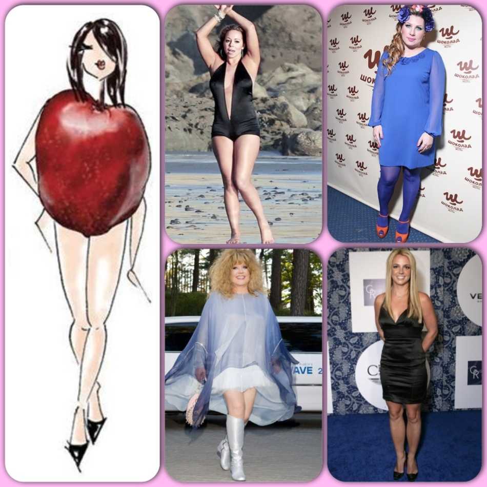 Если у женщины полноватый живот и пышные формы бюста, но, при этом красивые стройные ноги. Этот тип фигуры называется — яблоко. В этом случае надо подчеркнуть достоинства: открыв зону декольте, или украсив ее украшениями, и ноги. Юбки одевать надо немного длиннее уровня колена, так же как и платья. Можно выбрать длинное платье, но верх при этом должен быть облегающим