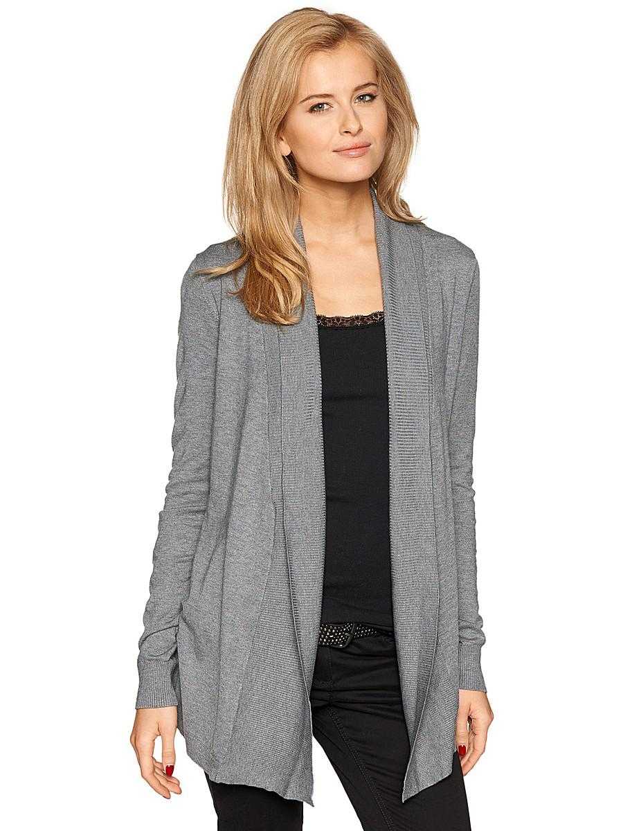 По-прежнему высоким спросом пользуются кардиганы в серых оттенках с V-образным вырезом. Такую вещь рекомендуется иметь каждой даме, ведь она прекрасно впишется в любой стиль и будет очень полезной.