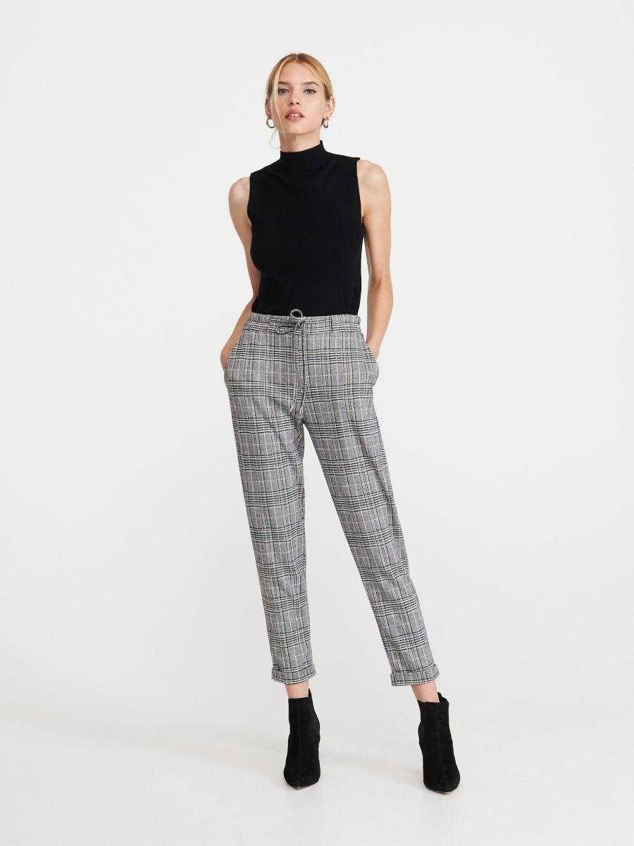 Помимо резинки, длина брюк может регулироваться самим изделием. Укороченные варианты шикарно вписываются в композицию высоких девушек, которым нужно визуально уменьшить длину ног.