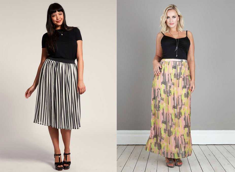 Юбка с широкими вертикальными полосами – неплохое решение для полных девушек. Этот принт всегда в моде, а полоса, расположенная таким образом зрительно вытягивает силуэт и придает стройности.