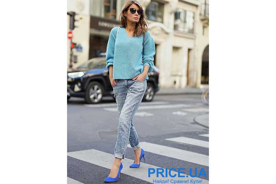 Бойфренды идеально сочетаются практически с любой обувью Судите сами, они отлично выглядят в паре с кедами и с туфлями-лодочками. Что касается верха, то здесь тоже выбор очень большой. Можно сочетать со свободной майкой, толстовкой и косухой. А можно – с классическим пиджаком и шелковой блузой.