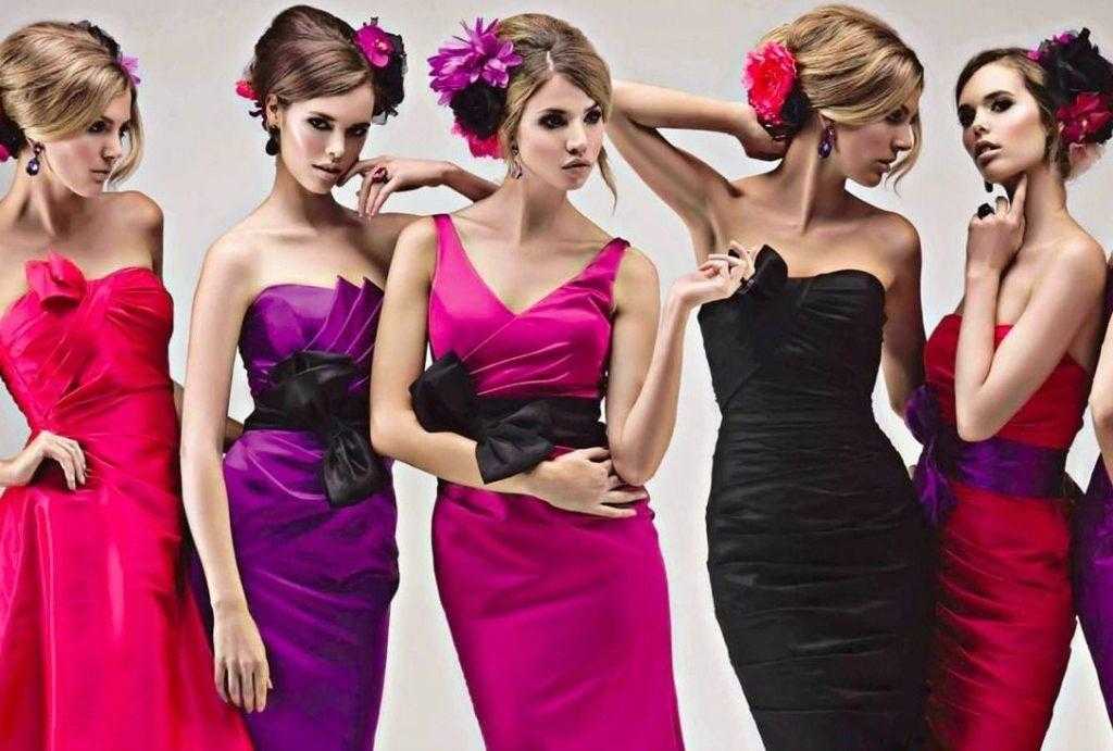 Как и в случае с кружевными, атласные вечерние платья должны иметь максимально отличающийся от белого цвета, а силуэт лучше выбирать по фигуре или хотя бы прямой. Они придутся кстати, если свадьба зимой. Одежда гостей должна быть достаточно плотной, чтобы холод не проникал к ногам. Короткие же летние платья могут быть выполнены из более тонкого материала с шелковистой фактурой.