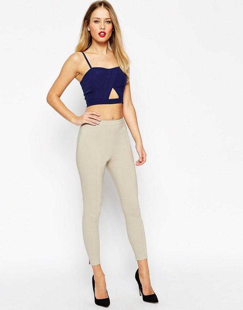Одной из самых топовых моделей брюк, являются скини. Универсальность фасона, позволяет создавать различные образы, на каждый день. Скини представляют собой узкие брюки средней посадки плотно облегающие ногу по различной длинны. В комбинации с топами и высоким каблуком, скини создают сексуальный образ. А вот с блузами или рубашками будет хороший деловой наряд. Но и с другой одеждой будет интересное сочетание. Лучшим завершением образа будет обувь на каблуке или танкетке, так силуэт будет изящнее и стройнее. Что касается фигуры, такие брюки лучше смотрятся на стройных ножках. Так как плотно обтягивающий фасон, подчеркнет недостаток полных ног. Если дама с формами все же выбрала подобную модель, сочетание ее с удлинённым верхом свободного кроя. Так вы скроете животик и бедра, которые подчеркнут брюки.