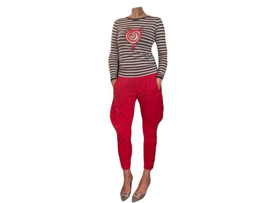 Штаны с лампасами снова стали популярными несколько лет назад. Они выполнены в одном цвете, с боковыми вставками вдоль наружных сторон ног в другом контрастном цвете.Такие брюки относятся к спортивной одежде. Их шьют свободными, чаще всего в чёрном цвете с красными или белыми лампасами.