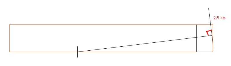 - По правому краю вверх отметить точку на расстоянии 2,5 см, сделать прямой угол для края стойки.