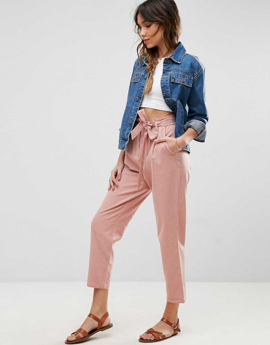 Брюки с заниженной талией станут незаменимым атритутом повседневного образа. Подберите в качестве верха бежевую блузу и заправьте ее в брюки. В качестве обуви выберите сандалии на плоском ходу или ботинки на платформе.