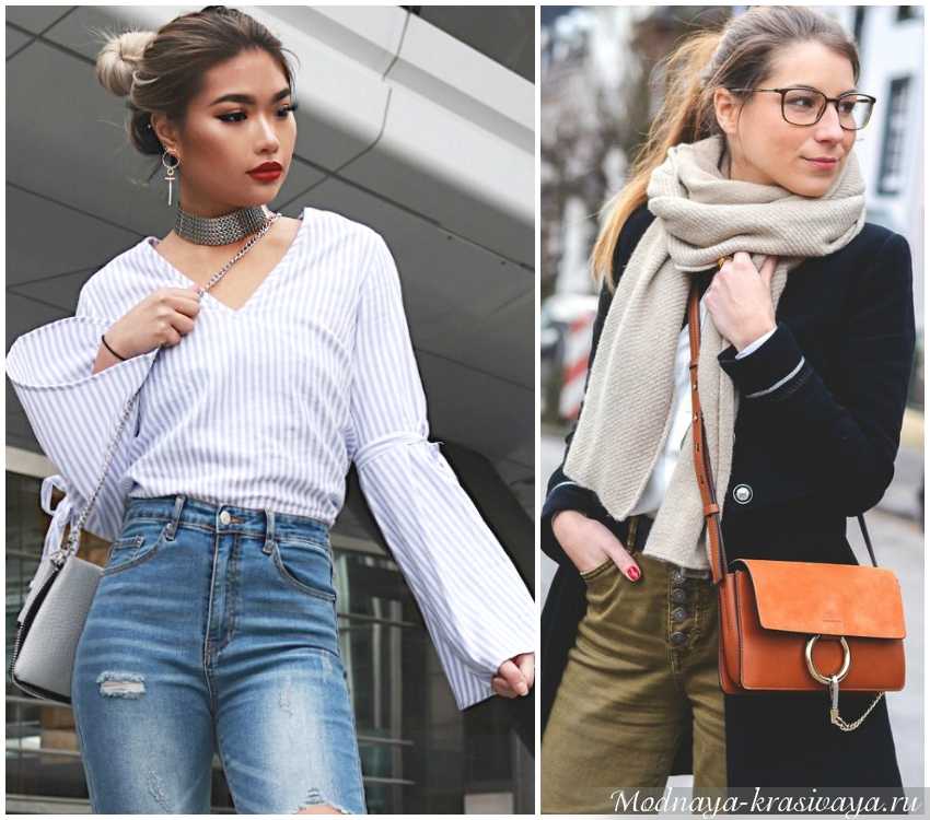 Сумка должна гармонировать по форме с очертаниями фигуры. Откажитесь от слишком романтических моделей в пользу классических, клатчей геометрической формы, мягких шопперов, рюкзаков. Следите, чтобы сумка находилась не в районе талии, а чуть выше или ниже.