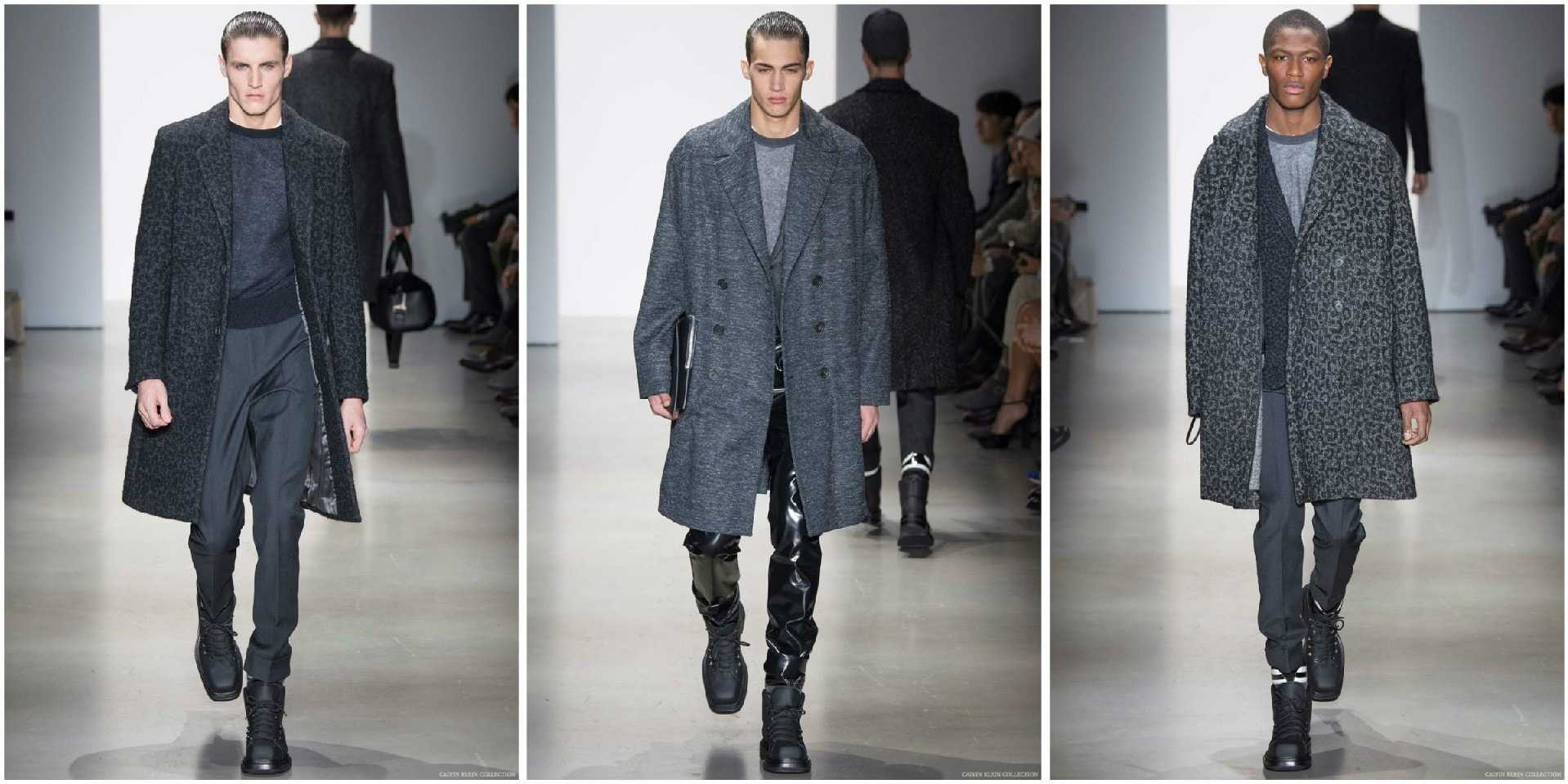 Ключевой деталью мужской линии одежды уже на протяжении многих лет является пальто. Модный дом Calvin Klein не изменяет установленным традициям. Долгие годы коллекции мужской одежды украшают стильные и строгие пальто в стиле «oversize», выполненные в монохромной цветовой гамме.